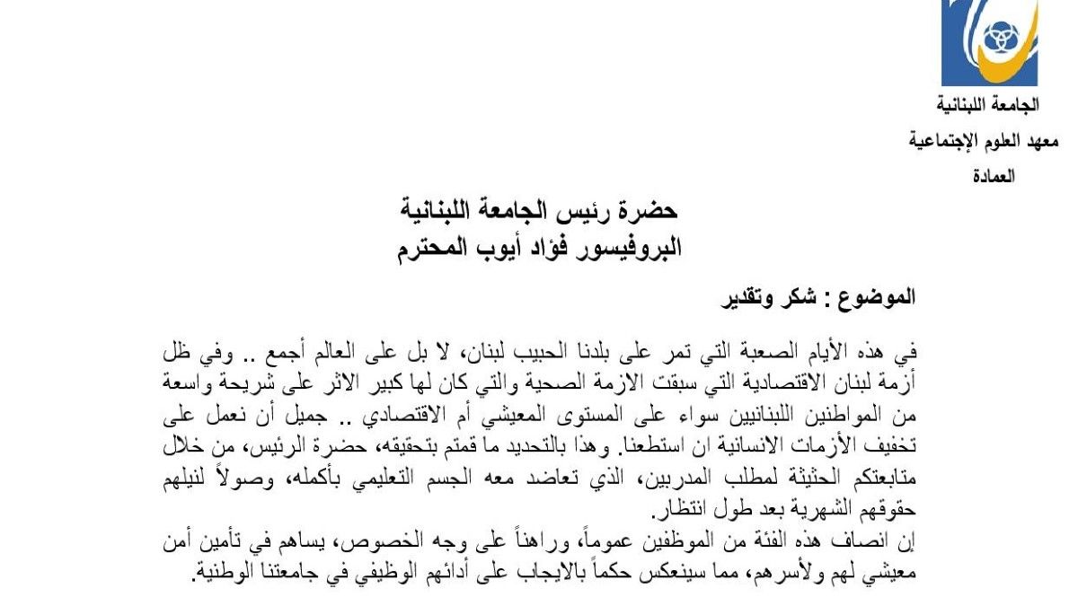 انشاء مكتب البحث والتطوير في الجامعة اللبنانية