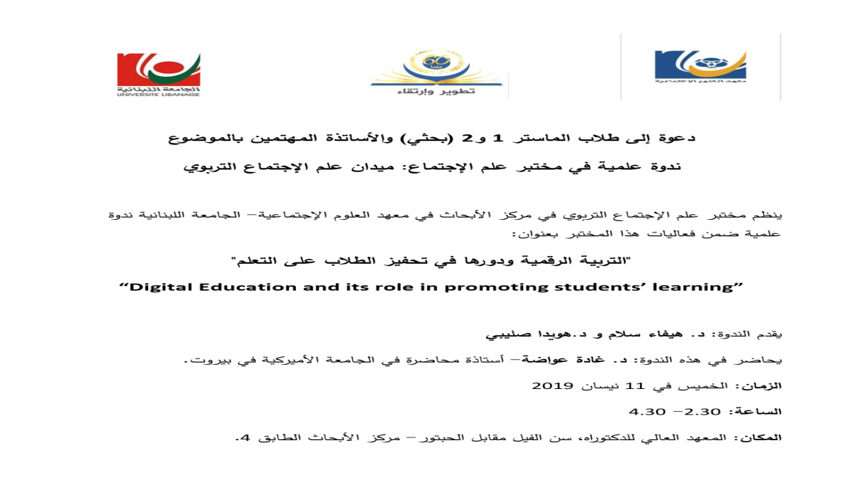 ندوة علمية في مختبر علم الإجتماع: ميدان علم الإجتماع التربوي