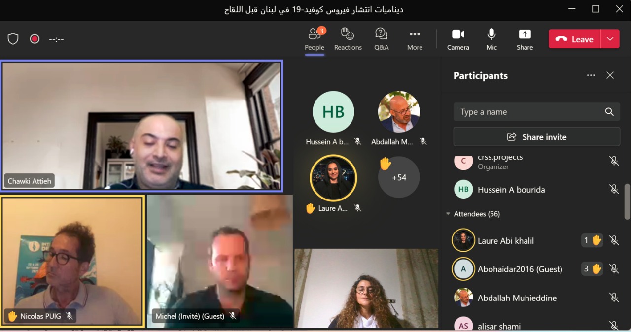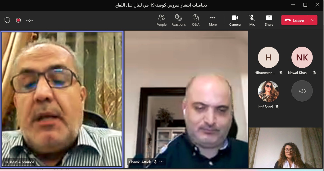 وفي الإطار نفسه أقيمت محاضرة من بعد، من خلال تطبيق المايكروسوفت تيمز حول موضوع ديناميات انتشار فايروس الSARS-COV-2، المسبب لمرض الكوفيد19، حاضر فيها د. شوقي عطيه وقدمتها منسقة المشروع د. لبنى طربيه.