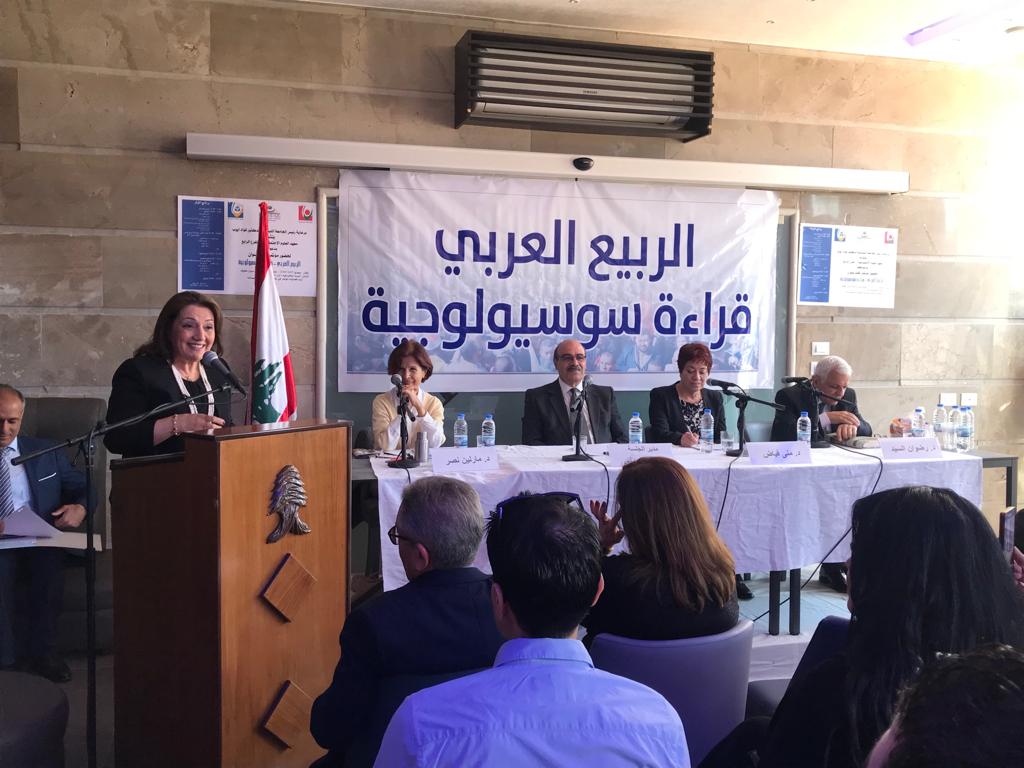 يوم أكاديمي مميز طبع فعاليات المؤتمر الذي اقامه الفرع الرابع بعنوان: الربيع العربي - قراءة سوسيولوجية، والمنعقد بتاريخ ٤ نيسان ٢٠١٩ برعاية حضرة رئيس الجامعة اللبنانية البروفسور فؤاد أيوب ممثلاً بحضرة عميدة معهد العلوم الاجتماعية البروفسور مارلين حيدر وحضور نواب وحشد من الأكاديمين والمثقفين والطلاب وذلك في مجمَّع zone gate في مكسه - البقاع.