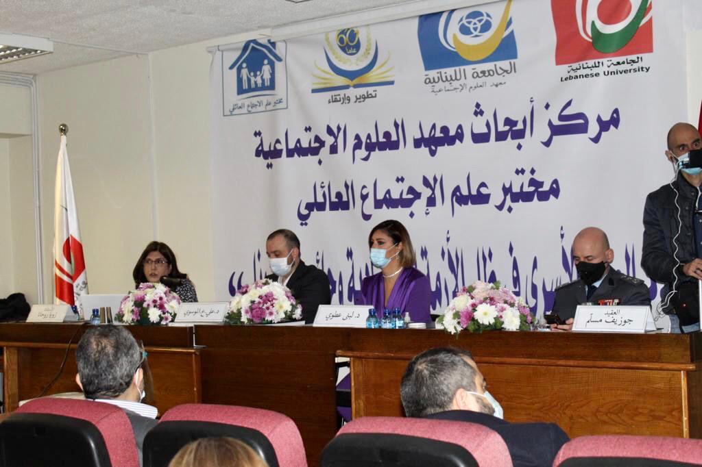 تناولت منسقة مختبر علم اجتماع العائلة، العلاقة الارتباطية ما بين العنف والأزمات في سياق معرفي ــــــــ تاريخي، موصّفة ظاهرة العنف من وجهة سوسيو ــــــــ عائلية، مشيرة إلى تجليات صورتها الحالية في المجتمع اللبناني الذي يشهد أزمة متشابكة، متعدّدة الأبعاد.