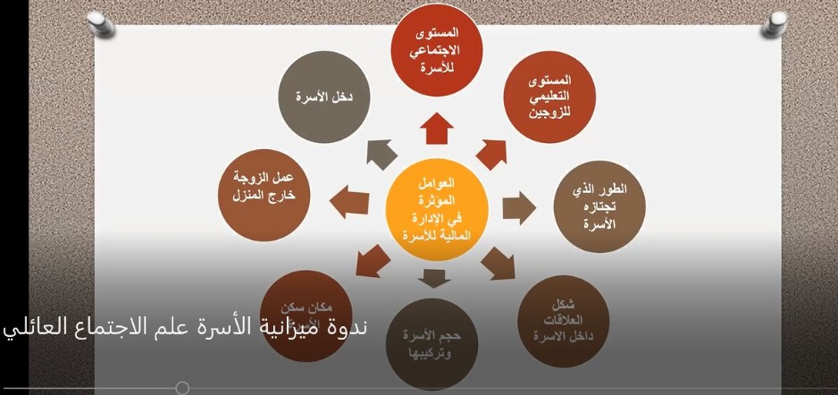 تناولت رئيسة قسم التنمية الاجتماعية والاقتصادية والسكّان في معهد العلوم الاجتماعية ــــــ الفرع الأول، الاسرة وميزانيتها المالية باعتبارها منظومة علائقية تفاعلية، تشمل الإدارة المالية للأسرة والعوامل المؤثرة فيها، مشيرة إلى الميزانية الاسرية كمفردة من مفردات «حسن التدبير»، ومتناولة تداعيات سوء الإدارة المالية على الاسرة، والمعنى الاجتماعي للمال، والإدارة والإرادة. واعتبرت مصطفى "أنّ العوامل المؤثّرة في الإدارة المالية للأسرة تتمحور حول: المستوى الاجتماعي للأسرة، والمستوى التعليمي للزوجين، ومكان سكن الأسرة، وعمل الزوجة خارج المنزل، وشكل العلاقات داخل الاسرة، والطور الذي تجتازه الأسرة، وحجم الأسرة وتركيبها، ودخل الأسرة".